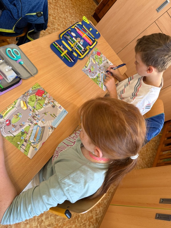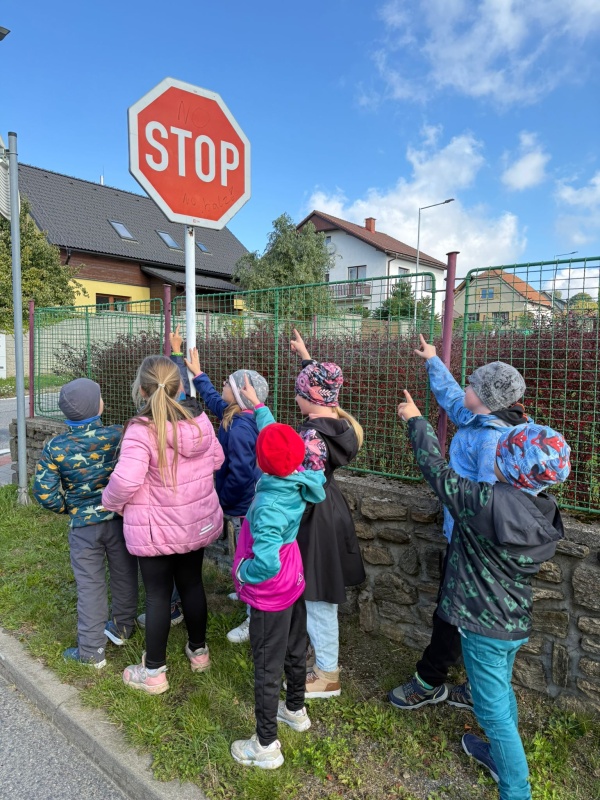 Mladší skupina (1.–2. ročník) se v první části seznámila se základními pravidly chůze, přecházení vozovky i vhodnými místy pro hru. Nechybělo povídání o nejznámějších dopravních značkách, následně jsme vše prakticky procvičili při vycházce v okolí školy.