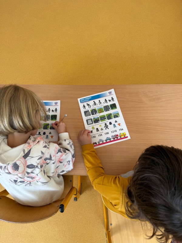 Starší děti (3.–4. ročník) navázaly podrobnějším výkladem – kromě chování chodců jsme se věnovali i tématu bezpečnosti cyklistů, pravidlům pro cestující a dalším zásadám bezpečného pohybu. Program probíhal formou diskuze, praktických ukázek a dopravních testíků, které děti zvládly na výbornou.